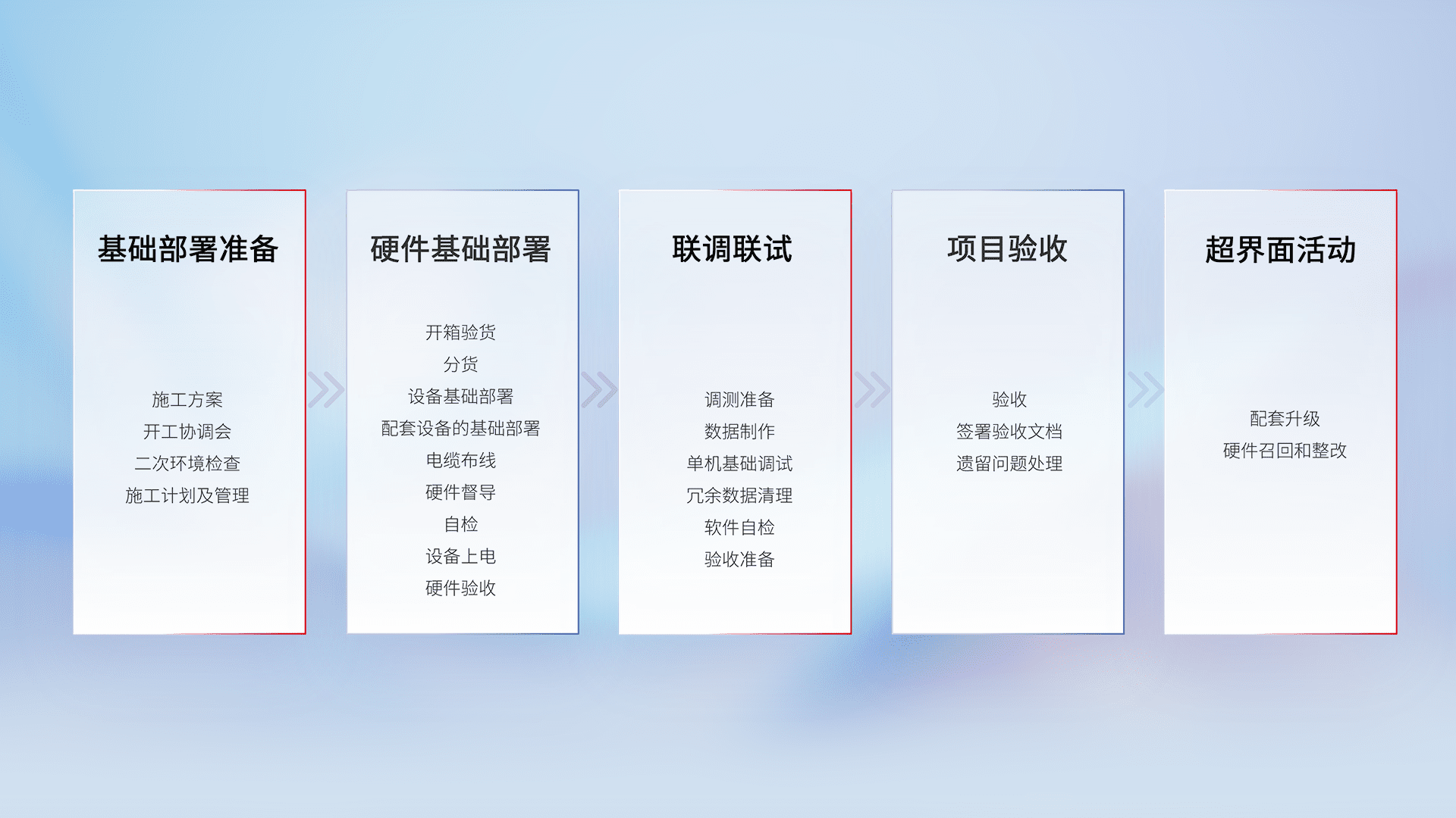 从基础部署准备、、、、硬件基础部署、、、、联调联试、、、、项目验收、、、、越界面活动的全过程可追溯,,保证施工质量和进度。。。。
